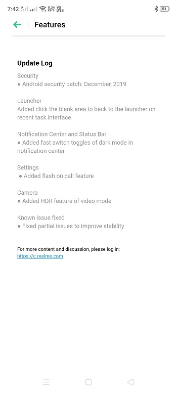 Also getting the January update is the Realme X2. Just like the X2 Pro, this update is also based on the December 2019 security patch level. The following is the update’s changelog.