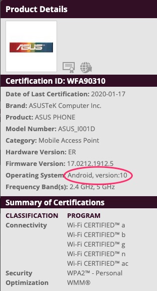 Asus has grabbed new Wi-Fi and Bluetooth certifications for a few already released phones. A quick lookup unveiled they are different variants of ROG Phone II. So, it’s logical to think that they have acquired it for Android 10 specifically because the wi-fi.org page says so.