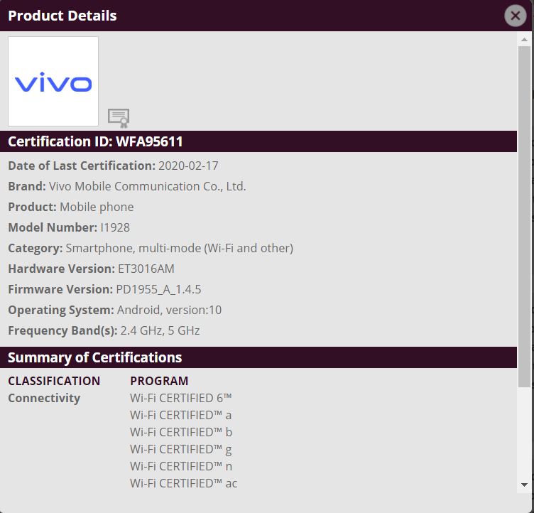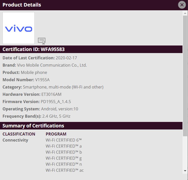 Another upcoming brand’s devices i.e. iQOO (which is a sub-brand of Vivo) was also spotted in this Wi-Fi Alliance certifications. A total of three models of iQOO 3 devices were seen running Android 10.