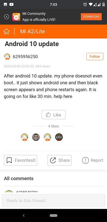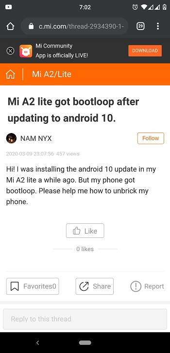 A quick scroll through the forums and you will come across countless threads of users who got stuck in a bootloop after installing Android 10 on their Mi A2 Lite devices.