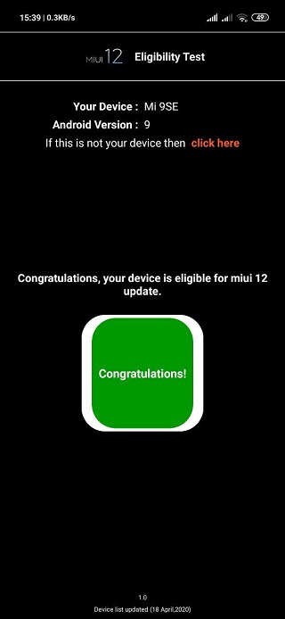 The MIUI 12 Eligibility Test is developed by Alpha Developers Official. From the information on Google Play Store, this is the only app from the developer. We have tried this app on a couple of Xiaomi phones including Xiaomi Mi 9 SE and Xiaomi Mi Max 3.