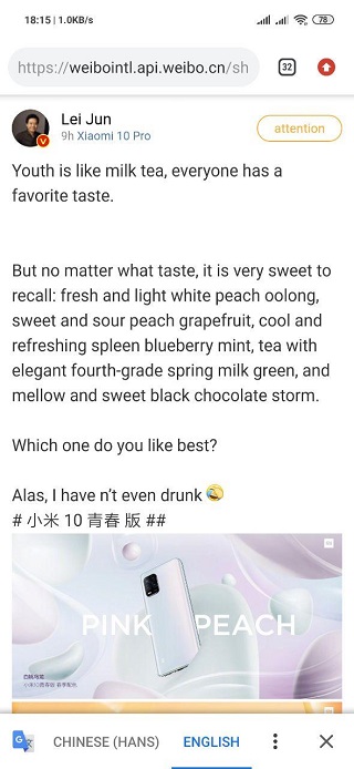 Furthermore, Xiaomi CEO, Lei Jun released the teaser of the colours of the Xiaomi Mi 10 Lite. His Weibo post says