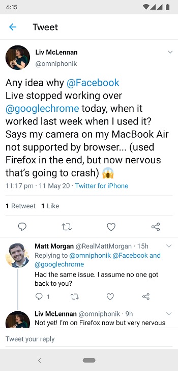 None of these companies has come out to address this problem and for now, the only workaround seems to be to just ditch Chrome altogether and use Firefox if you must use Facebook Live.