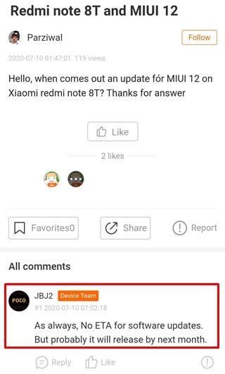 Seeking more information regarding the update, a user took to the Mi Community to get some answers. Turns out, the same Mi Device Team member who gave the “few months times” timeframe for the Redmi Note 8T, has now given more clarity.
