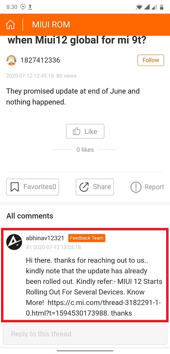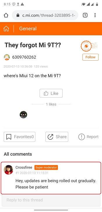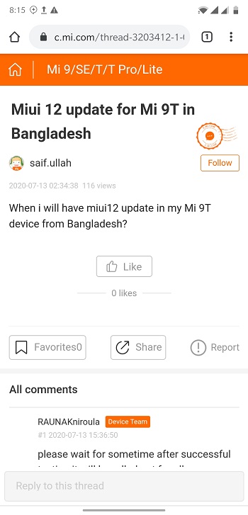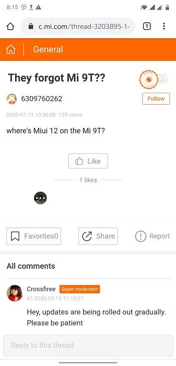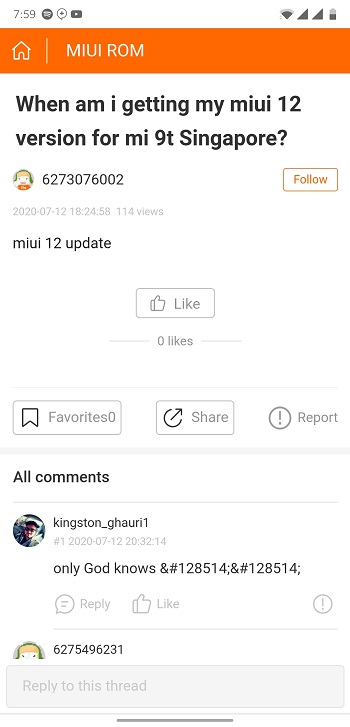 These users are clearly on edge, borderline losing their patience with each passing day that MIUI 12 update does not hit their devices. Users who opted to install MIUI 12 on their Mi 9T devices manually have also had little success.