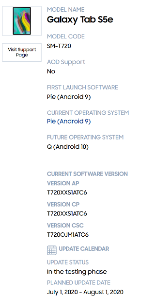 The stable Android 10-based One UI 2.0 update is now hitting the Galaxy S5e device at least in the UK region as build T725XXU1BTF7 along with the June security patch. The official device page conveys the change.