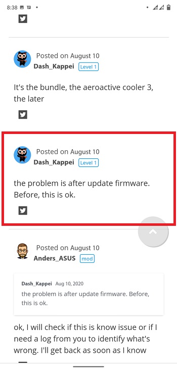While addressing this issue, an Asus moderator says that the technical team has been unable to recreate this problem. However, the company will be adding code to the next update that will force the device to update the AeroActive Cooler 3 firmware.