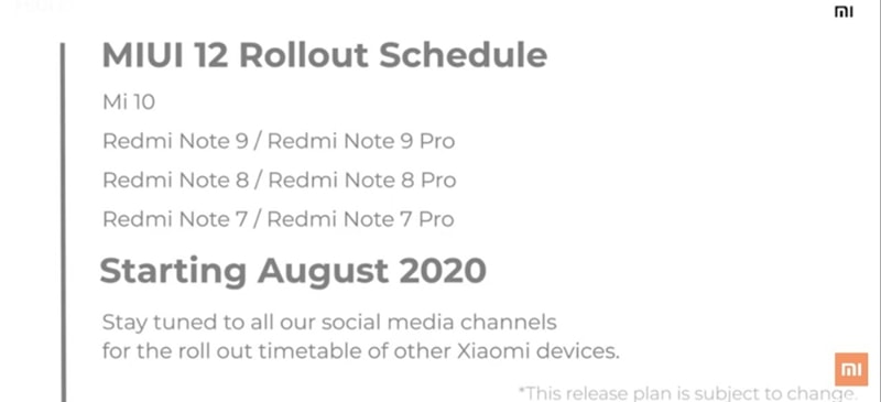 According to the provided roadmap, the Mi 10, Redmi Note 9, Note 9 Pro, Redmi Note 8, Note 8 Pro, Redmi Note 7, and Note 7 Pro should all start receiving the stable MIUI 12 this month. We’ve also shared a screenshot of the roadmap below: