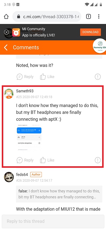 The moderator of the community continues to confirm that indeed, this is following the update to MIUI 12. This is a very welcome addition, especially for users who have fully moved to wireless audio as AptX offers users one of the best Bluetooth audio performance in the industry today, provided you own a pair of supported earphones.
