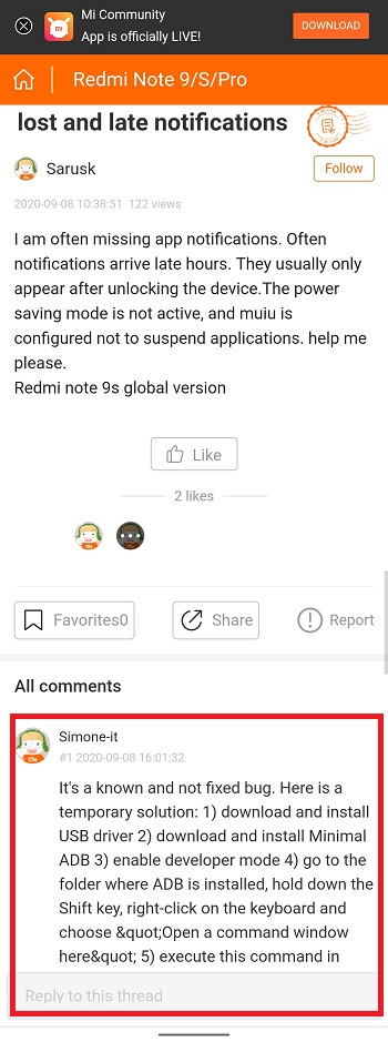 In response to this user-complaint, a Super Moderator on the Mi Community Forum confirms that this issue has been submitted to the development team. He goes on to confirm that the bug is set to get fixed in an upcoming update, most probably MIUI 12 for Redmi Note 9S.