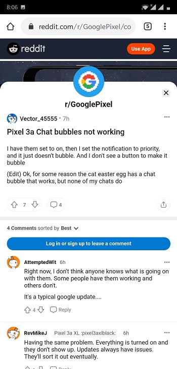 is there a known issue with the chat bubbles not working for the default google messages app on my pixel 4a? Thanks