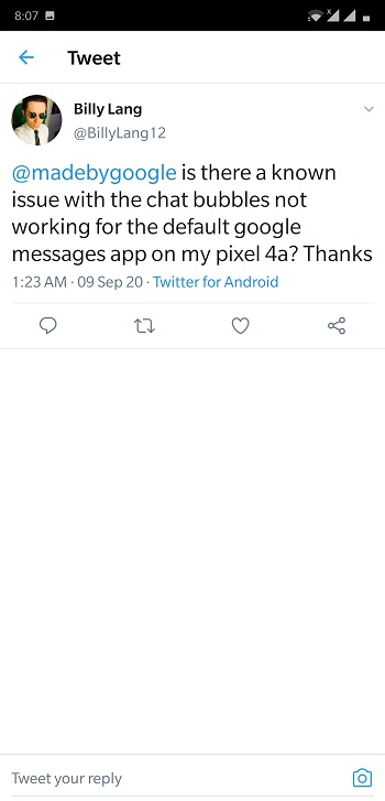Responding to a user’s query regarding the missing Chat Bubbles in Android 11, the Made by Google Twitter handle claimed that the issue is under investigation and will share more details once ready.