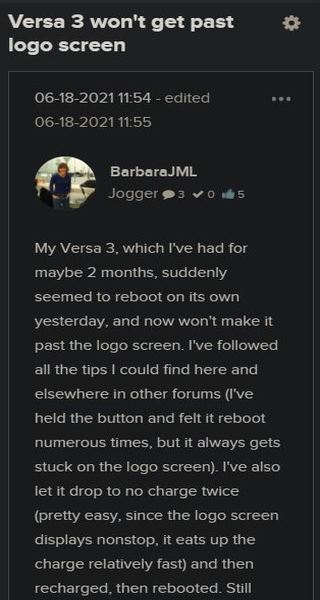 Some Fitbit Sense & Versa 3 units stuck on Fitbit logo or black screen after a recent firmware update