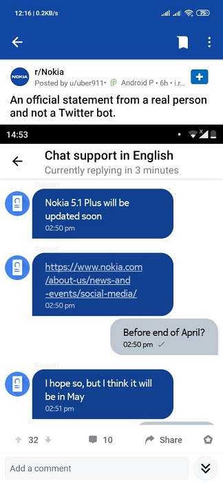 Now, an alleged statement from Nokia support claims that the Nokia 5.1 Plus update could arrive anytime from now but most likely in early May. The statement reads: